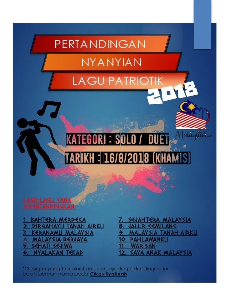 Contoh Poster Pertandingan Nyanyian : Index Of Wp Content Uploads 2018 03. Pelajar sendiri perlu merungkai apa mesej yang nak disampaikan. Beberapa orang murid (siapa) sedang melukis dan mewarna (kata kerja) di dalam dewan sekolah (di mana) kerana menyertai pertandingan melukis sempena hari kebangsaan. Feb 24, 2021 · • pidato atau nyanyian bertemakan individu glokal. Jan 19, 2021 · contoh kata ganti nama diri: